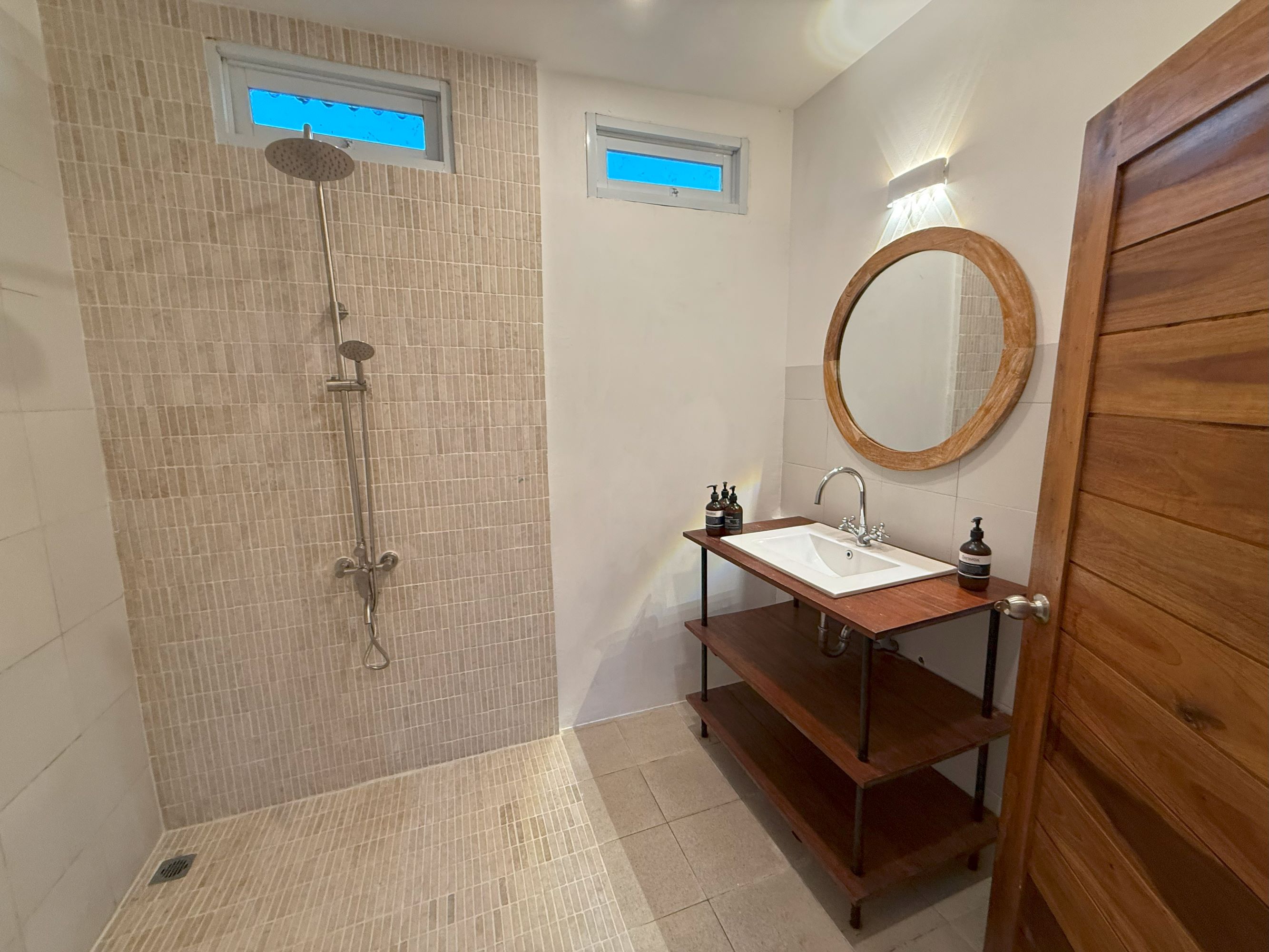 Ideal for friends, children or a couple, the Guest Room is located next to the Master Guest. The versatility of this room is great for large groups having the option of two single beds, or one queen size bed using practical and comfortable custom made Hollywood twin frames. With spacious cupboards, windows, a lounge, AC, electronic safe & an open-aired bathroom that can be accessed through the bedroom or from the outside living area, the Guest Room compliments the easy-living feel of Villa Amaya.